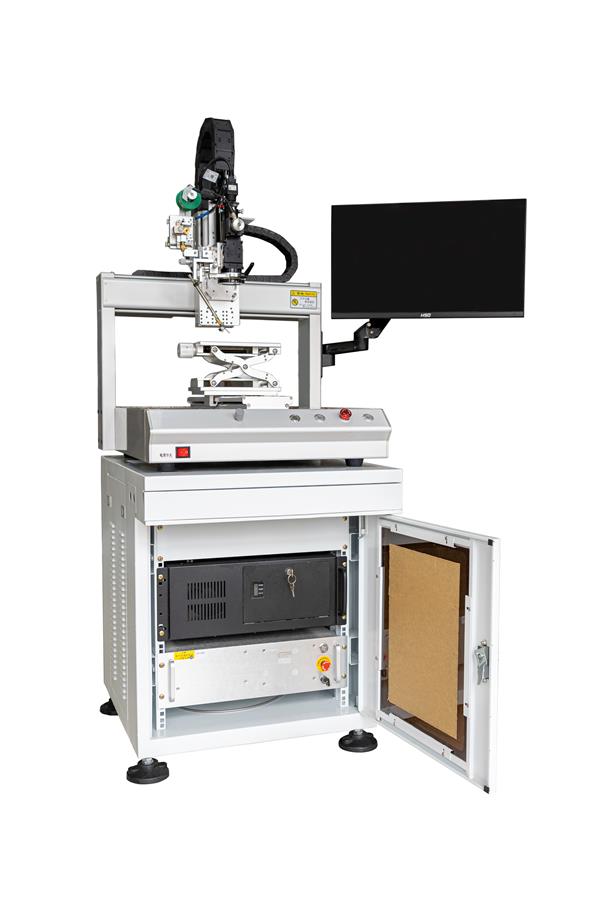 激光锡焊机:能独立完成焊接过程。不过功能比较单一,需要人工上下料。无需集成到产线。