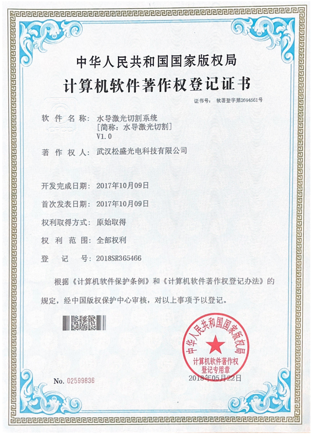 软件名称:水导激光切割系统[简称:水导激光切割]V1.0