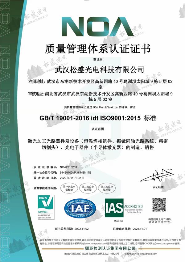 ISO9001质量管理体系认证证书